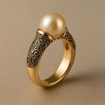 Anillo Dorado Adornado con Perlas Vintage RESISTENTE AL AGUA