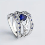 Conjunto de Anillos de Zafiro Plateado RESISTENTE AL AGUA