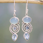 Brilla con estos pendientes únicos. Su diseño en espiral y piedras azules suaves los hacen muy especiales.